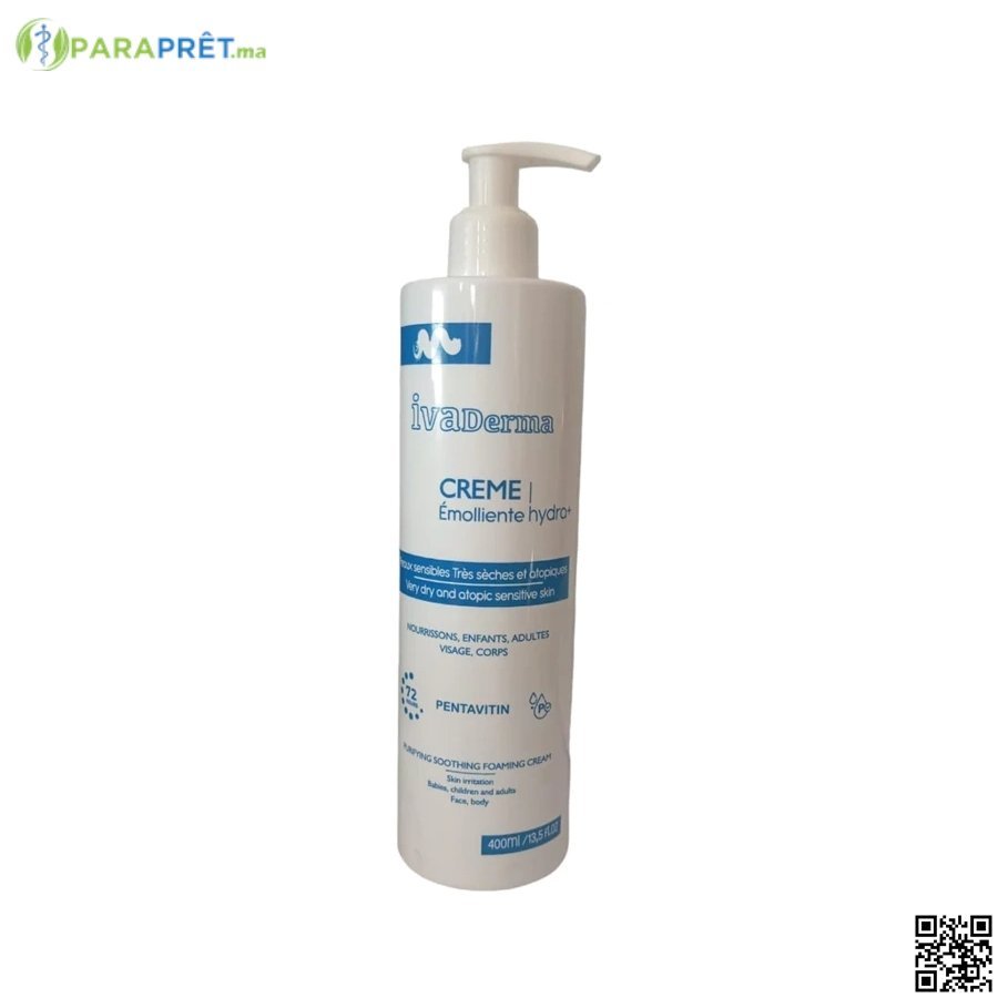 **Optimisation SEO :** Crème émolliente Ivaderma 400ml, hydratation peau sèche, apaiser dermatite, crème nourrissante, soin peau sensible.